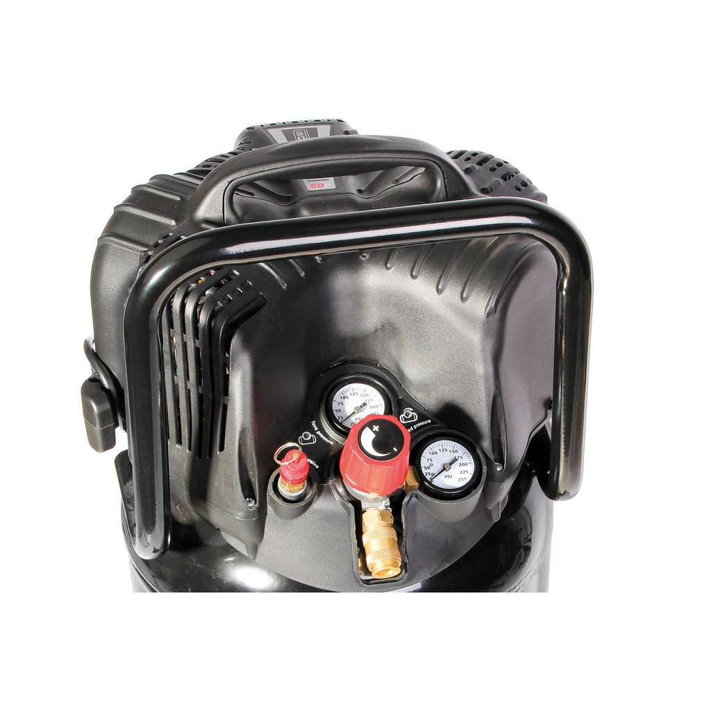 The SIP V245/50 50ltr Vertical Direct Drive Compressor is built with an upright space-saving receiver tank, making this compressor ideal for a range of environments where floor space comes at a premium. A wheel-mounted design ensures optimal mobility wherever the compressor is deployed.The top-mounted control panel is fitted with ergonomic dials and an easy-to-read gauge to make operation as simple as possible.Ideal for mobile tasks and small to medium-sized garages and workshops.• Oil-free system for a maintenance-free clean air supply• Space-saving vertical receiver reduces footprint for even the tightest spaces• Lightweight and compact design for easy mobility and storage• Top-mounted control panel with easy-to-read gauge and ergonomic dial• Ideal for mobile tasks, and small to medium-sized garages and workshops• Euro-type fitting quick-release coupler• SIP 2-Year Standard Silver Warranty• Designed in Italy