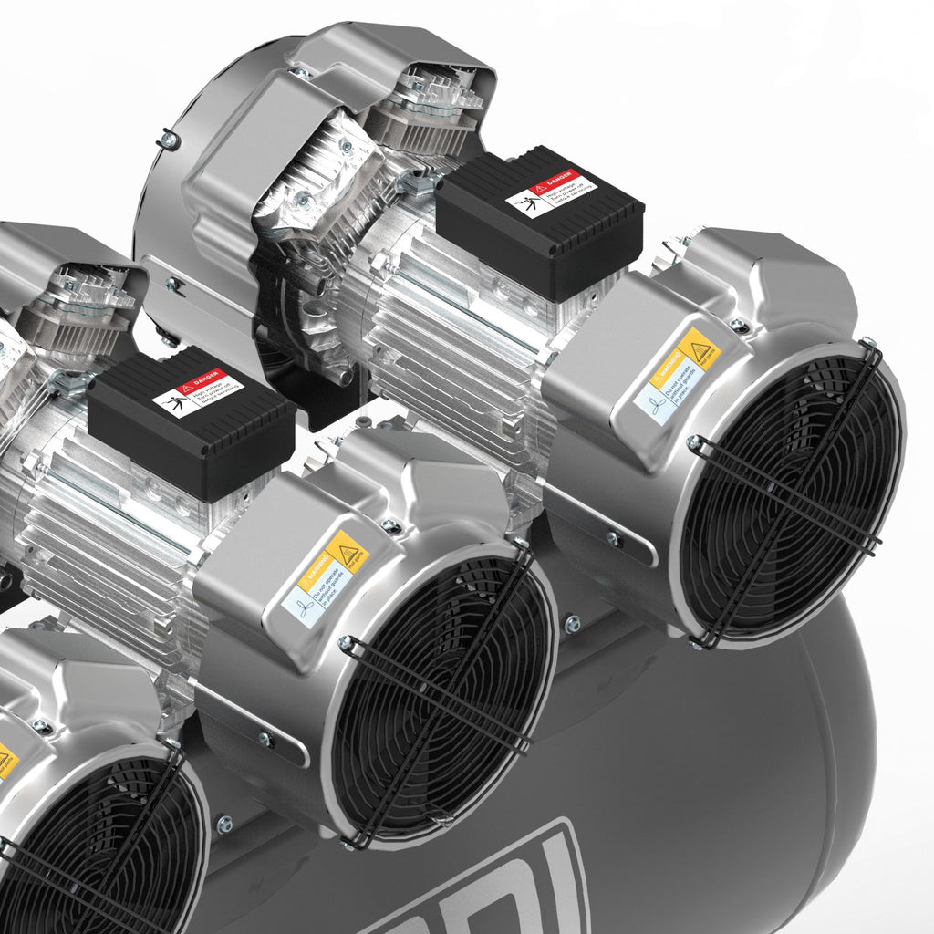 The integrated control panel provides bespoke multi-pump support, delivering even power distribution on up to 3 motor/pump configurations, operating them continually dependant on air requirements and optimising usage.