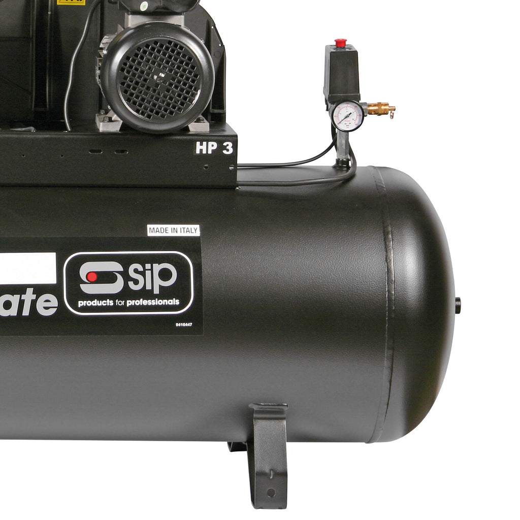 The SIP PX3/200-SRB 200ltr Belt Drive Compressor utilises heavy-duty components including finned manifolds, an oversized crankcase and aluminium aftercooler to provide high-quality compressed air with improved moisture reduction. This means a reduced weight and increased corrosion resistance for durability and long life.Providing consistently reliable and higher quality compressed air production with reduced moisture than other models, the PX3/200-SRB is a must-have for any trade environment where quality air is required for prolonged and demanding applications.• Oil-lubricated and belt-driven workhorse compressor• Heavy-duty B3800 pump for high performance in all tasks• Extra-strong moulded plastic belt and flywheel guard for improved safety• Multi-finned flywheel for improved cooling and long life• Heavy-duty cast iron barrel for an increased service life• Finned manifolds and aluminium aftercooler for reduced moisture; aluminium ensures a reduced weight and higher corrosion resistance• Oversized crankcase for improved lubrication• SIP 2-Year Standard Silver Warranty• Manufactured in Italy