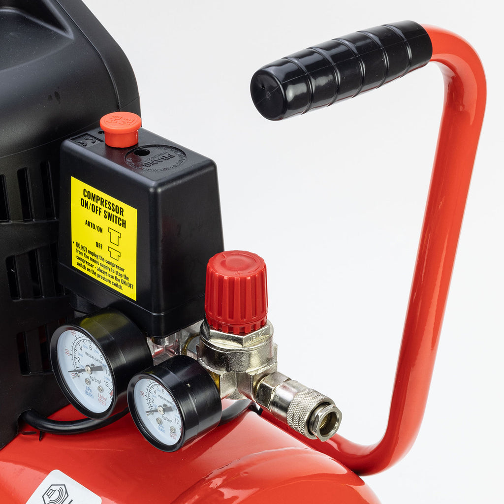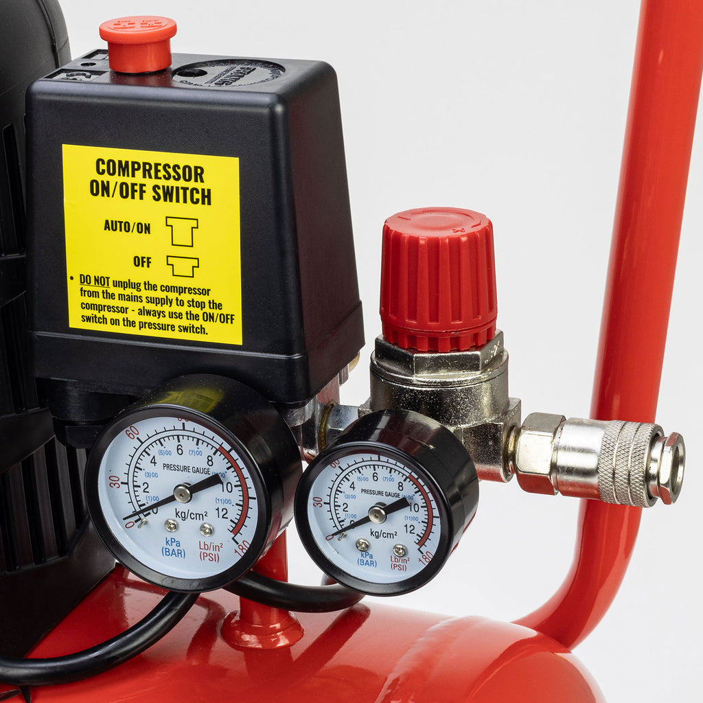 - 24LTR RECEIVER TANK SAFELY STORES COMPRESSED AIR READY FOR APPLICATION USE: Maintains a consistent supply of air for air tools and inflation tasks up to 8bar air pressure.