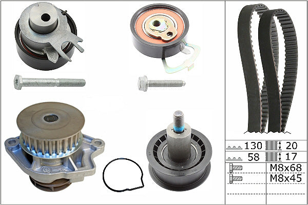 The timing belt system controls the combustion process and the the camshaft drive operation, which opens and closes the valves at the right time. To do this consistently requires accurate tensioning throughout the whole timing belt route, so that all tensioner and deflection pulleys operate in perfect synchronisation. The requirements placed on drive components has continuously increased in the last few years. Higher loads in the engine compartment combined with a longer life expectancy means that garages have to replace all of the belt drive system components at the same time, in line with the recommended change point specified by the vehicle manufacturer.As a technical partner and supplier of complete drive systems to the world's leading vehicle producers, INA offers the widest range of OE content Timing Belt KITs available to the UK aftermarket.INA KITs also contain everything needed for a professional belt system service, right down to the last nut, bolt and washer. If the application features a timing belt driven water pump, INA also offers a comprehensive range of Timing Belt KIT+ Water Pump references to suit.