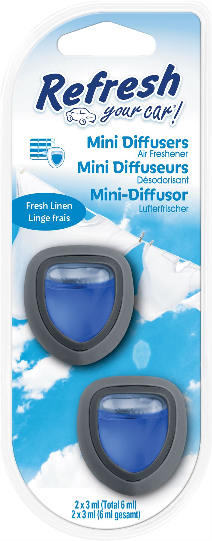 Refresh Your Car 301408200 Air freshener Fresh Linen Mini Diffuser Twin Pack