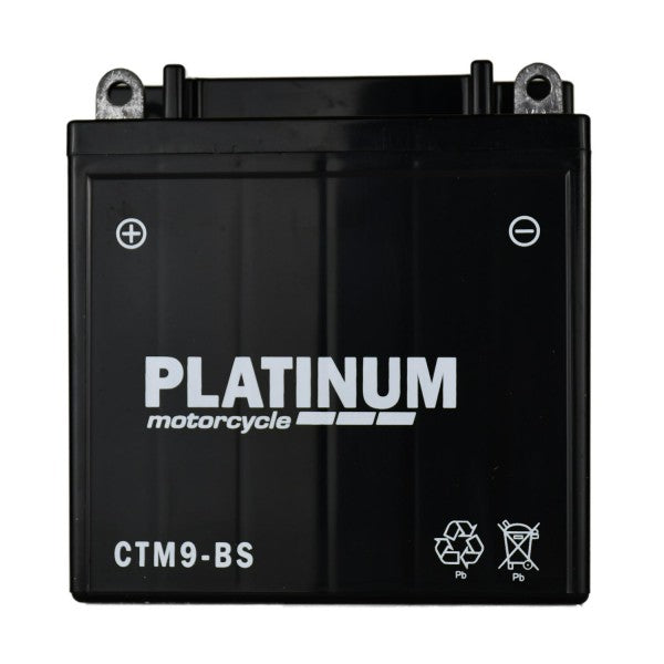 Factory Activated Product - Received in fully charged conditionKey Features• Factory Activated Product - Received in fully charged condition• AGM (Absorbed Glass Mat) Separator - Longer service life (increased charge and discharge compatibility) with maximum vibration resistance - A totally sealed unit that can be fitted in any orientation• Lead Calcium Grid Alloy - Increased electrical performance with a longer shelf and service life• Vent With Flame Arrestor - Resists high internal pressures negating internal component damage• Polypropylene Case - For increased impact resistanceSpecificationAttributes ValueAh 9AhCCA 110Cell Layout 21Charge Rate 1ADimensions H 139mm x L 136mm x W 76mmHeight 139mmHold Down NLength 136mmTerminal 7Type Motorcycle Wet ChargedVolts 12VWarranty 1 YearWeight 3.2KgWidth 76mm