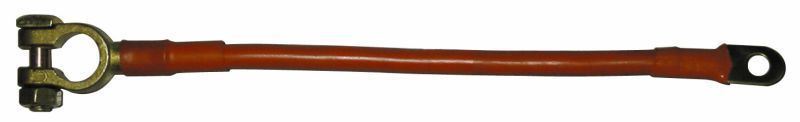 This insulated universal battery strap from Pearl comes coated in a red insulation and has an 8mm ring connector at one end and a clamp at the other. Total length: 15 inches. Capable of conducting up to 105 Amps. For automotive use. Pack of 1.