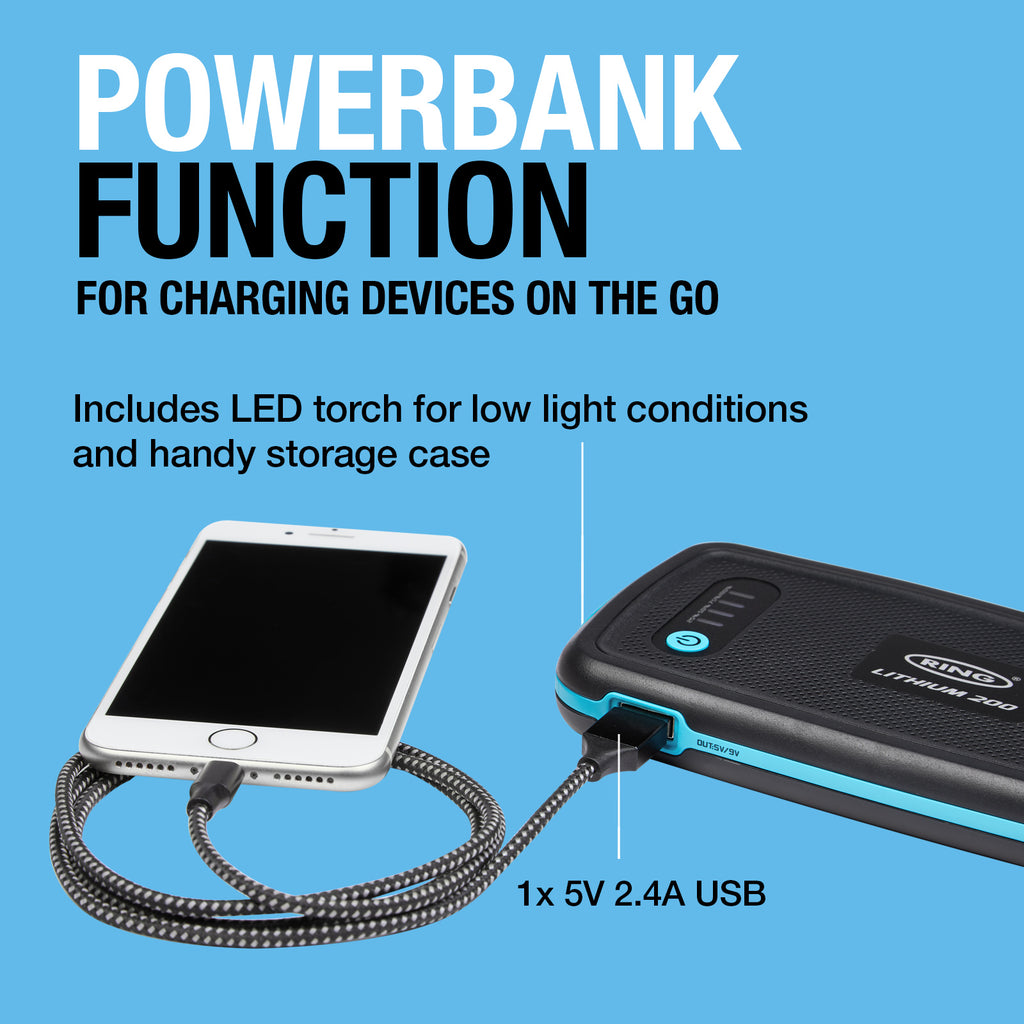 The powerbank function charges electronic appliances including smart phones and tablets. Recharges in just 2 hours, with micro USB charging cable included. Also features integrated LED torch, to make jump starting easier.