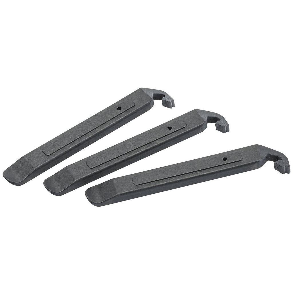 Pack of three reinforced nylon tyre levers. Perfect tool set for storing in any bike repair kit. Designed to be pushed between the rim and tyre bead to ease any tyre away from the wheel. Helping to make replacing tyres a quick and stress-free task. Supplied as a pack of three.