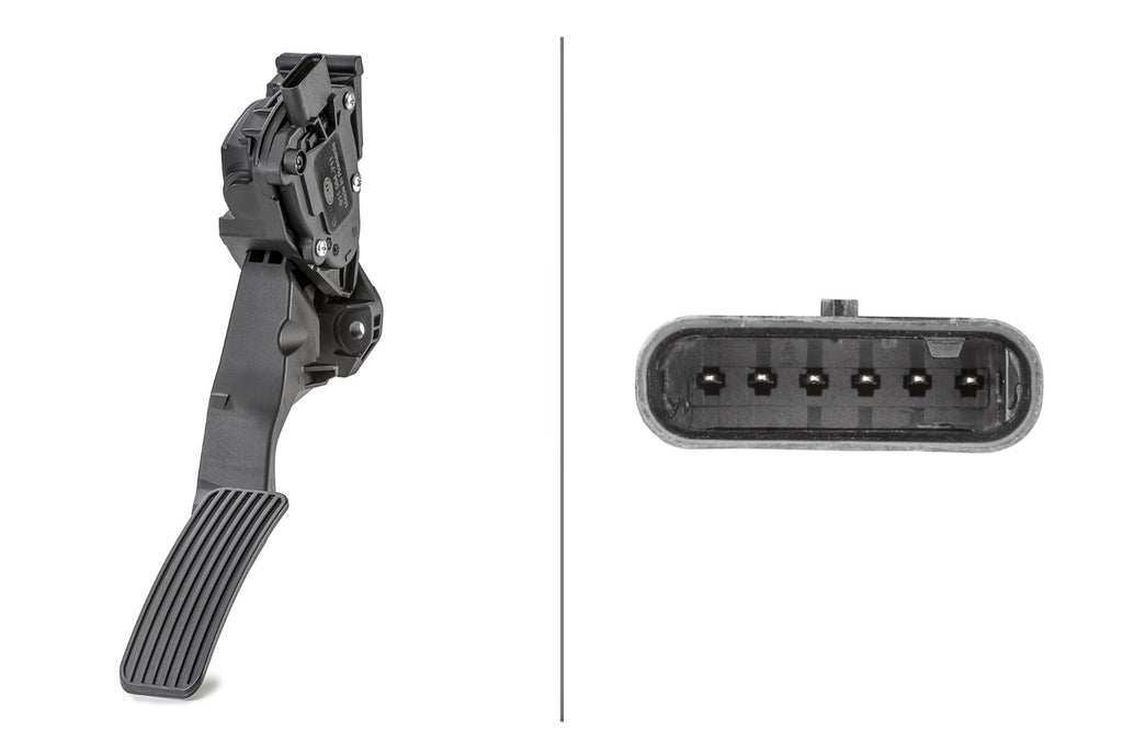 Item Attributes: Number of mounting bores: 2Number of pins: 6 -pin connectorTransmission Type: Automatic TransmissionLeft-/right-hand drive vehicles: for left-hand/right-hand drive vehiclesAssembly by qualified personnel required!The proportion of electronics in vehicles has increased continuously in recent years. A development in which HELLA has long played a special role as an innovation leader in the field of automotive original equipment. The independent aftermarket also benefits from this long-standing original equipment expertise with the successful transfer of its OE know-how. HELLA has a market-leading position in the field of accelerator pedal sensors and has many years of application experience in automotive original equipment. The accelerator pedal sensor range includes numerous variants and covers almost all common vehicle manufacturers.OE references: RENAULT 18 00 25F A0BSensor accelerator pedal position;HELLA;for left-hand/right-hand drive vehicles;Automatic Transmission;2;6;