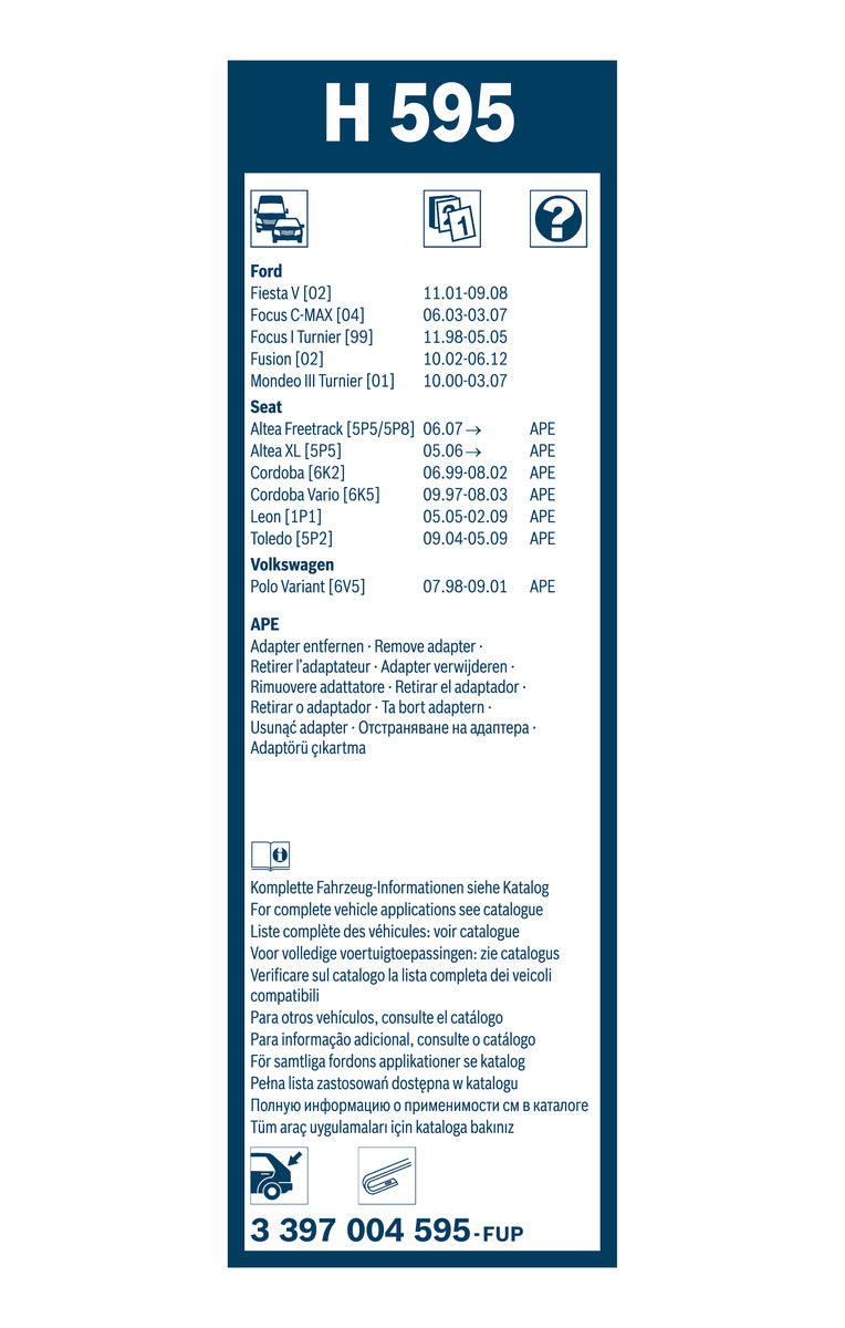 • Available with Bosch Aerotwin, plastic or conventional wiper blade technology: For a range of vehicle specific solutions