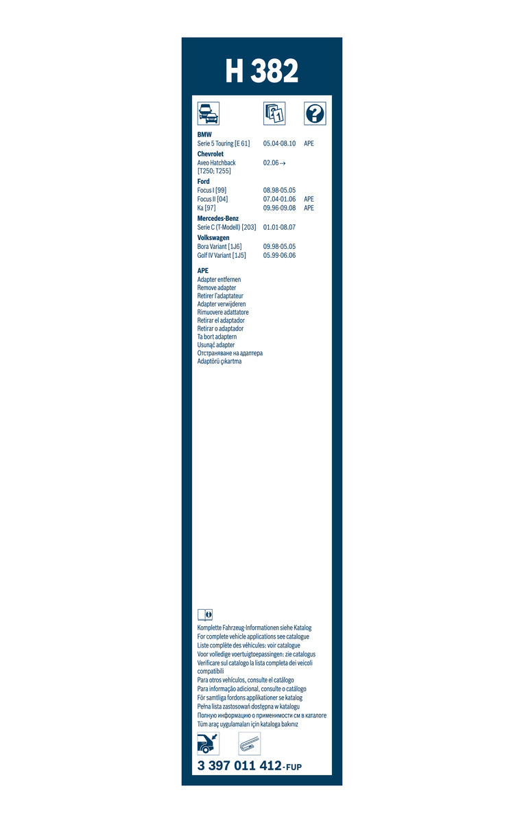 • Available with Bosch Aerotwin, plastic or conventional wiper blade technology: For a range of vehicle specific solutions