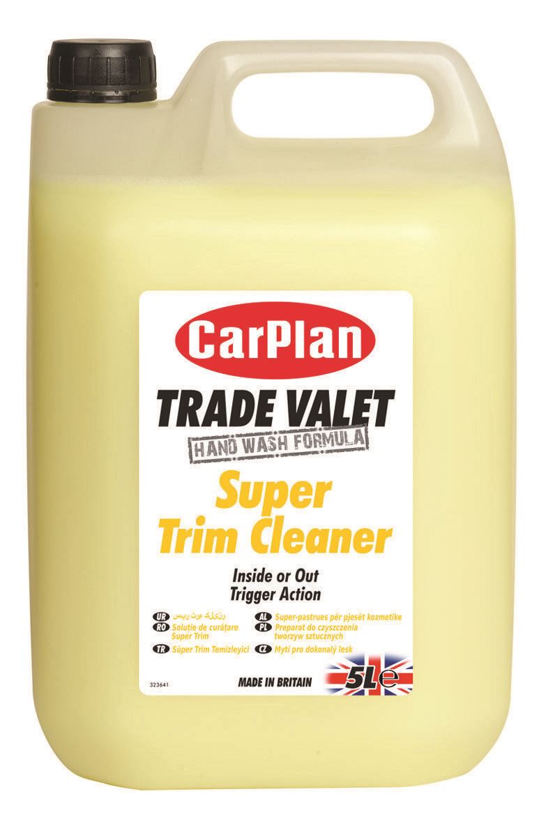 CarPlan Trade Valet Super Trim Cleaner offers a quick and easy way to clean and polish plastic and rubber interior and exterior surfaces. Ideal for use on trims, bumpers, and tyre walls.