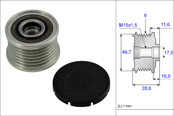 The rotational movement of the crankshaft in an internal combustion engine is not uniform. Why?: The four-stroke principle first brakes the crankshaft and then accelerates it again, causing vibration. This rotational irregularity is transferred to the FEAD system, causing increased load on all associated components. To protect the system from this vibration, INA created the Overrunning Alternator Pulley (OAP). This transmits the power of the crankshaft in just one direction, calming the belt drive as a result. It is now a common sight on the alternator fitted to many complex belt systems.A worn OAP can cause belt wobble and noise, which affects the whole FEAD system. Installing a genuine INA replacement OAP or Overrunning Alternator Decoupler (OAD) ensures maximum reliability and durability.If the OAP is diagnosed as worn and needs replacing, Schaeffler engineers recommend the replacement of the entire system at the same time, using the appropriate INA FEAD KIT.