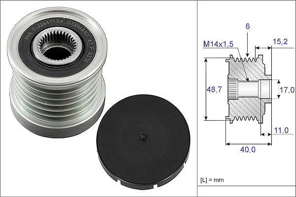 The rotational movement of the crankshaft in an internal combustion engine is not uniform. Why?: The four-stroke principle first brakes the crankshaft and then accelerates it again, causing vibration. This rotational irregularity is transferred to the FEAD system, causing increased load on all associated components. To protect the system from this vibration, INA created the Overrunning Alternator Pulley (OAP). This transmits the power of the crankshaft in just one direction, calming the belt drive as a result. It is now a common sight on the alternator fitted to many complex belt systems.A worn OAP can cause belt wobble and noise, which affects the whole FEAD system. Installing a genuine INA replacement OAP or Overrunning Alternator Decoupler (OAD) ensures maximum reliability and durability.If the OAP is diagnosed as worn and needs replacing, Schaeffler engineers recommend the replacement of the entire system at the same time, using the appropriate INA FEAD KIT.