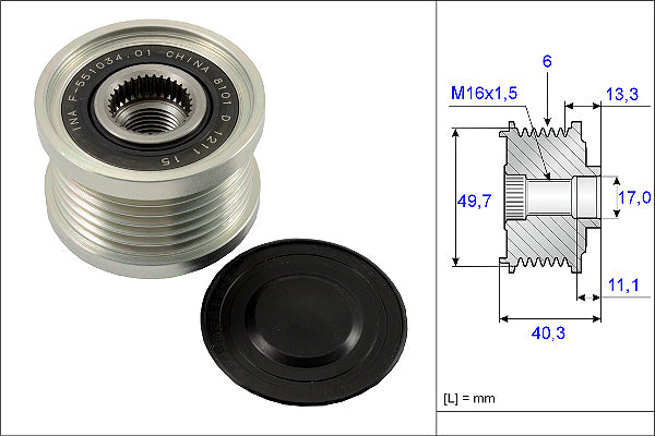 The rotational movement of the crankshaft in an internal combustion engine is not uniform. Why?: The four-stroke principle first brakes the crankshaft and then accelerates it again, causing vibration. This rotational irregularity is transferred to the FEAD system, causing increased load on all associated components. To protect the system from this vibration, INA created the Overrunning Alternator Pulley (OAP). This transmits the power of the crankshaft in just one direction, calming the belt drive as a result. It is now a common sight on the alternator fitted to many complex belt systems.A worn OAP can cause belt wobble and noise, which affects the whole FEAD system. Installing a genuine INA replacement OAP or Overrunning Alternator Decoupler (OAD) ensures maximum reliability and durability.If the OAP is diagnosed as worn and needs replacing, Schaeffler engineers recommend the replacement of the entire system at the same time, using the appropriate INA FEAD KIT.