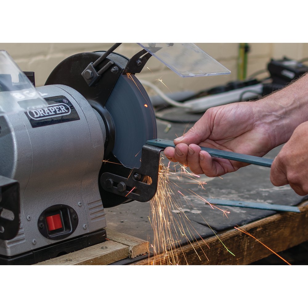 A high-quality, hard-wearing aluminium oxide bench grinding wheel with coarse grit. Suitable for general grinding, deburring and tool sharpening on non-ferrous metals and steel. Dry-cutting use only. Manufactured with a 31.75mm bore and supplied with 5 reduction rings enabling each bench grinding wheel to fit most bench grinders with a bore size between 12.7 - 31.75mm.