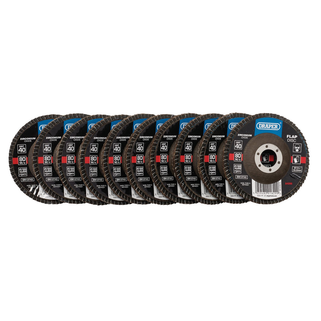 - 1 x Zirconium Oxide Flap Discs, 115 x 22.23mm, 40 Grit (Pack of 10)