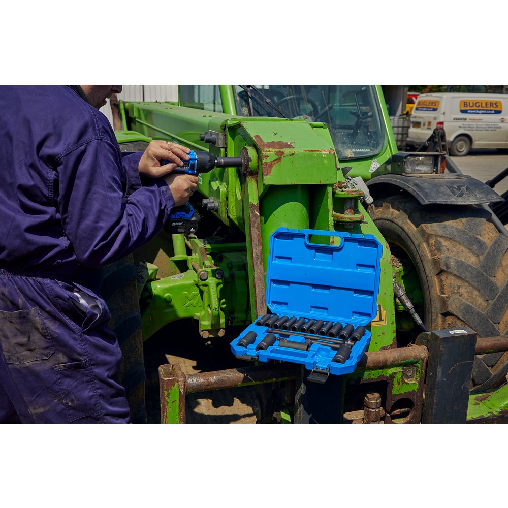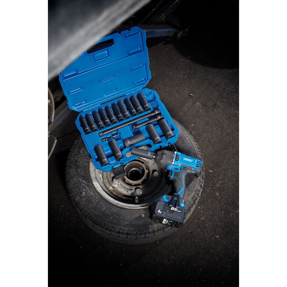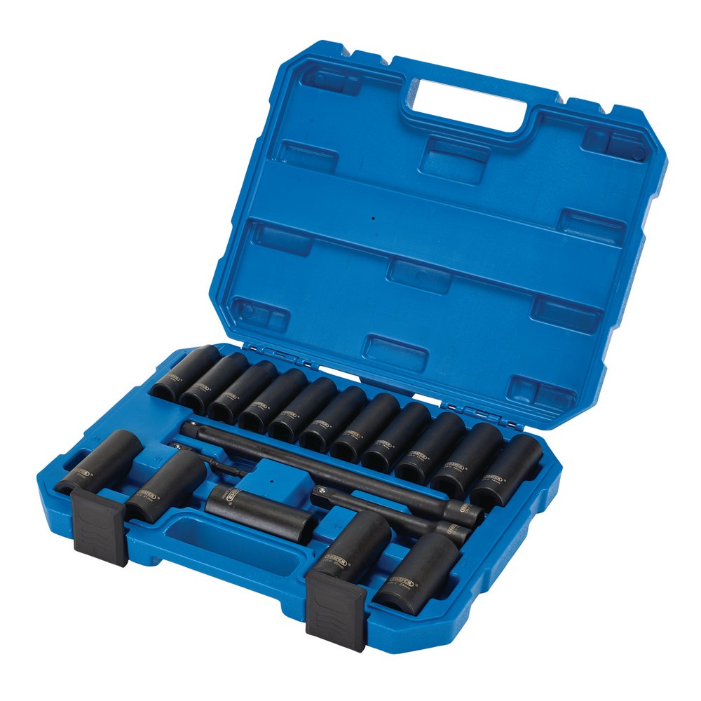 The components of this Draper HI-TORQ® 6-point deep impact socket set are forged from hardened and tempered chrome vanadium steel. They have a black phosphate finish for corrosion protection. The sockets are in variety of sizes from 8-24mm and the set includes a 125mm and 250mm 1/2" Sq. Dr. impact extension and 70mm 1/4" hex to 1/2" Sq. Dr. adaptor. Supplied in a sturdy blow moulded case.Payment & Security
