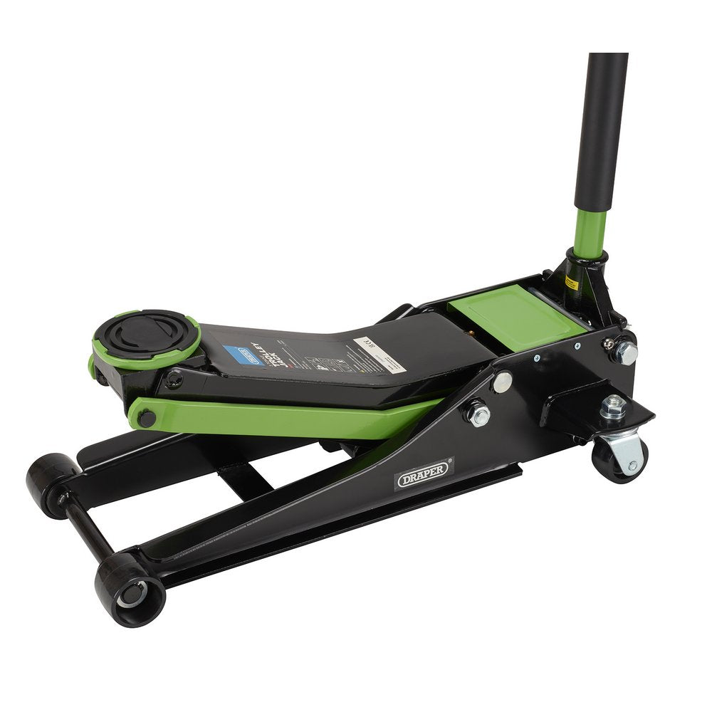 This low profile trolley jack is capable of lifting from 75-505mm and it has a capacity of 3 Tonne. It has a twin-piston quick lift facility, with eight pumps to enable it to reach maximum height efficiently. The twin spring return system ensures the jack lowers safely when not under load. It is fitted with a twin safety valve to prevent the jack from overloading. There is an integrated rubber saddle pad to prevent damage to the underside of the vehicle when in operation. There is also an EVA foam handle cover to prevent panel damage. The knurled handgrip on the end of the lifting arm enables a more secure hold when used. Fitted with hardwearing nylon wheels with rear swiveling castors, for quiet and smooth operation. These wheels also prevent damage to garage floors