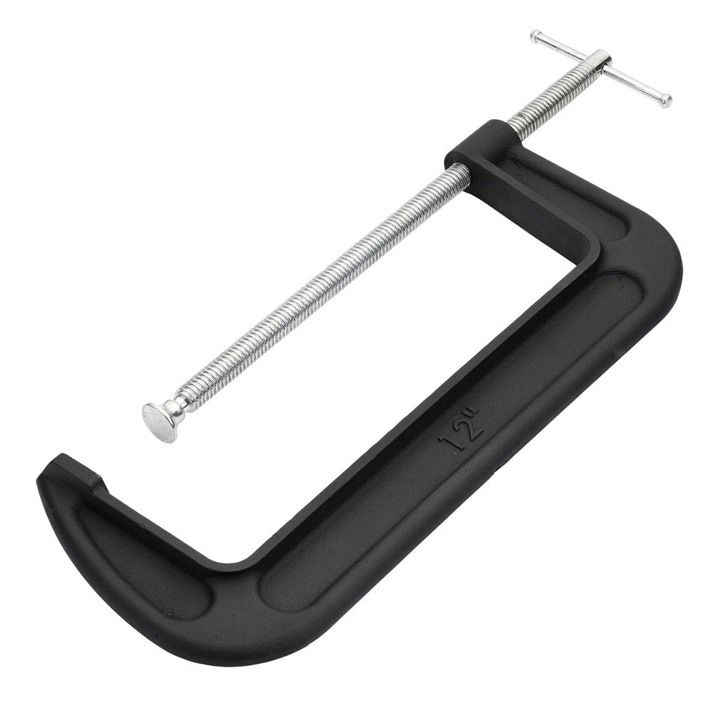This robust G-Clamp has a malleable cast iron frame and a powder coated finish for durability. The swivel shoe helps clamp on uneven surfaces. There is a silver plated square thread screw, tommy bar handle and swivel shoe.