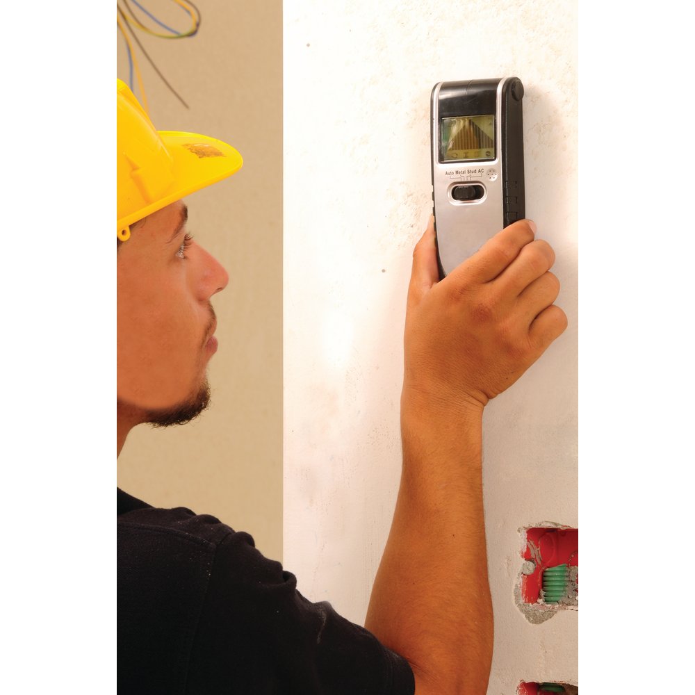Detects live and dead electricity cables, metallic water pipes, nails and wood studs in partition walling. Buzzer sounds when objects are located. Maximum depth penetration; AC live wires 51mm; metal pipes 60mm and wooden studs 19mm. Uses a PP3 size battery (sold separately).