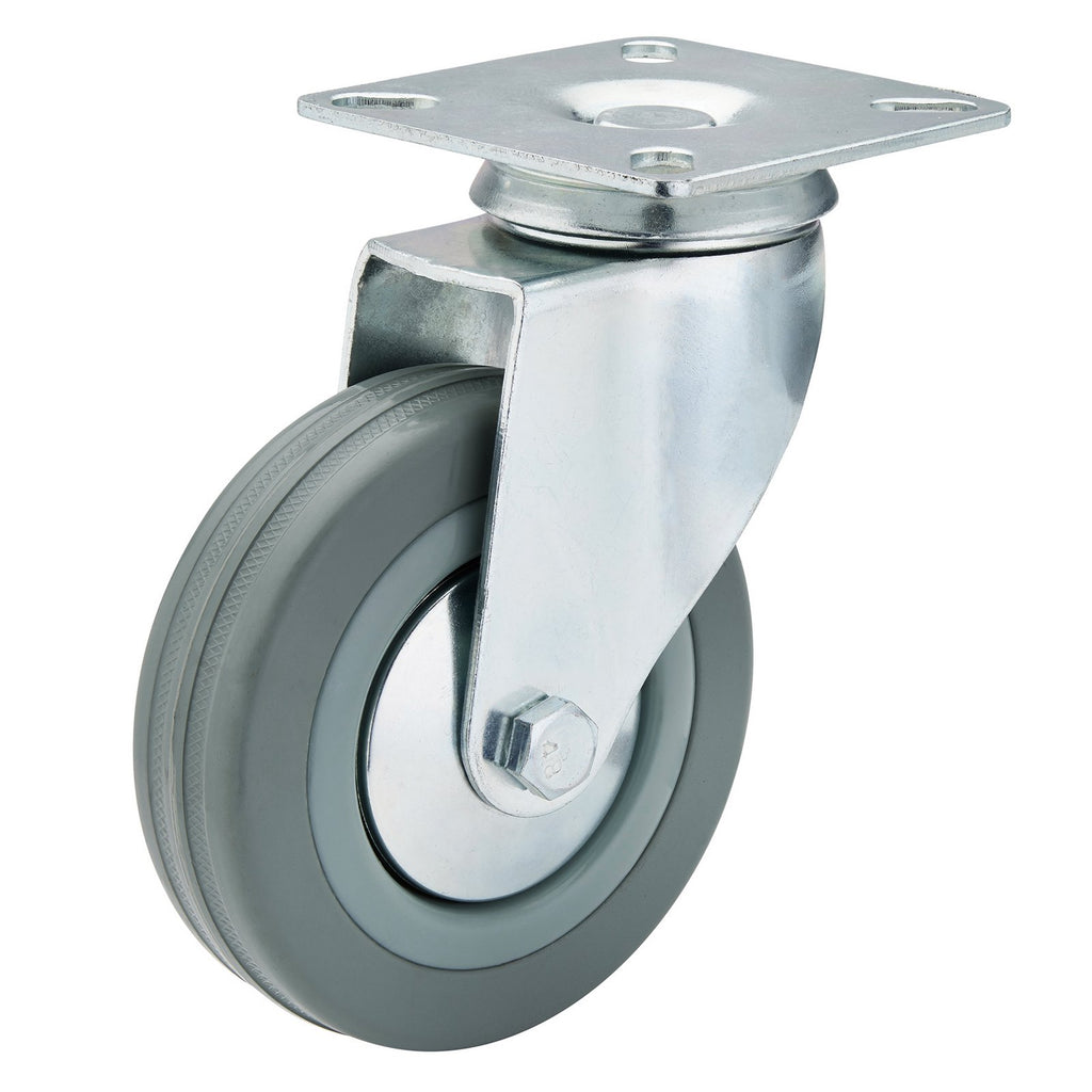 - 1 x Swivel Plate Fixing Rubber Castor, 100mm Diameter, S.W.L. 80kg