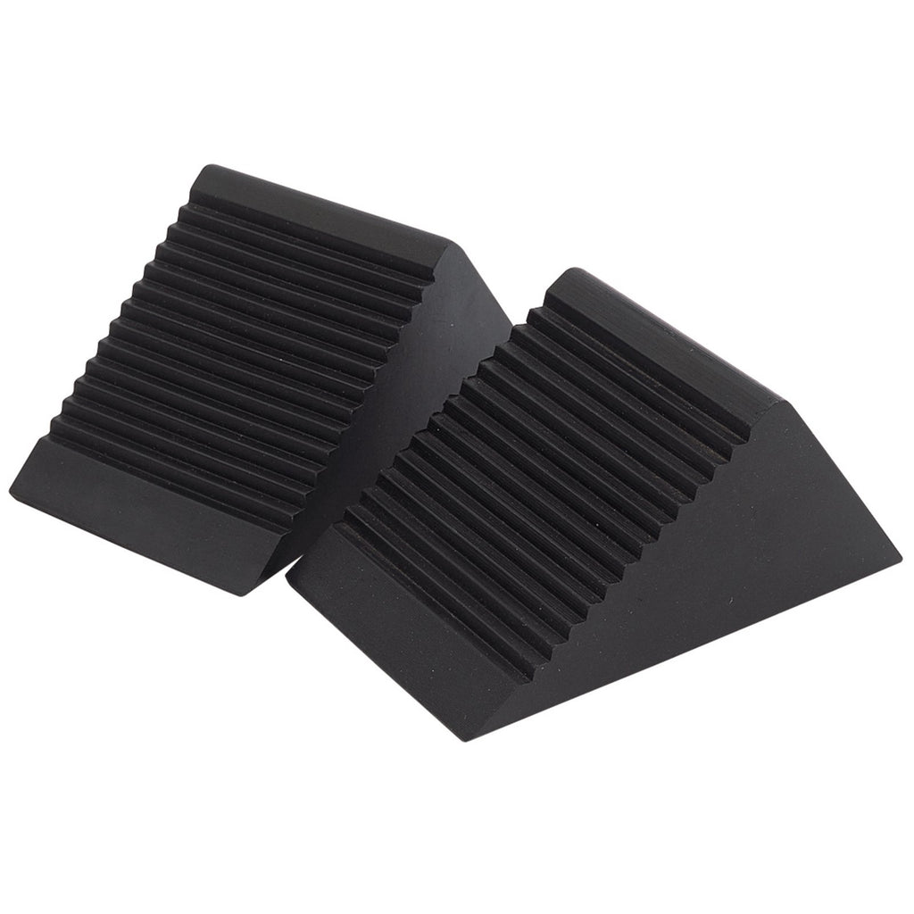 Pair of chocks to prevent vehicles moving whilst working with trolley jacks, scissor jacks, bottle jacks, axle stands or on a slope.