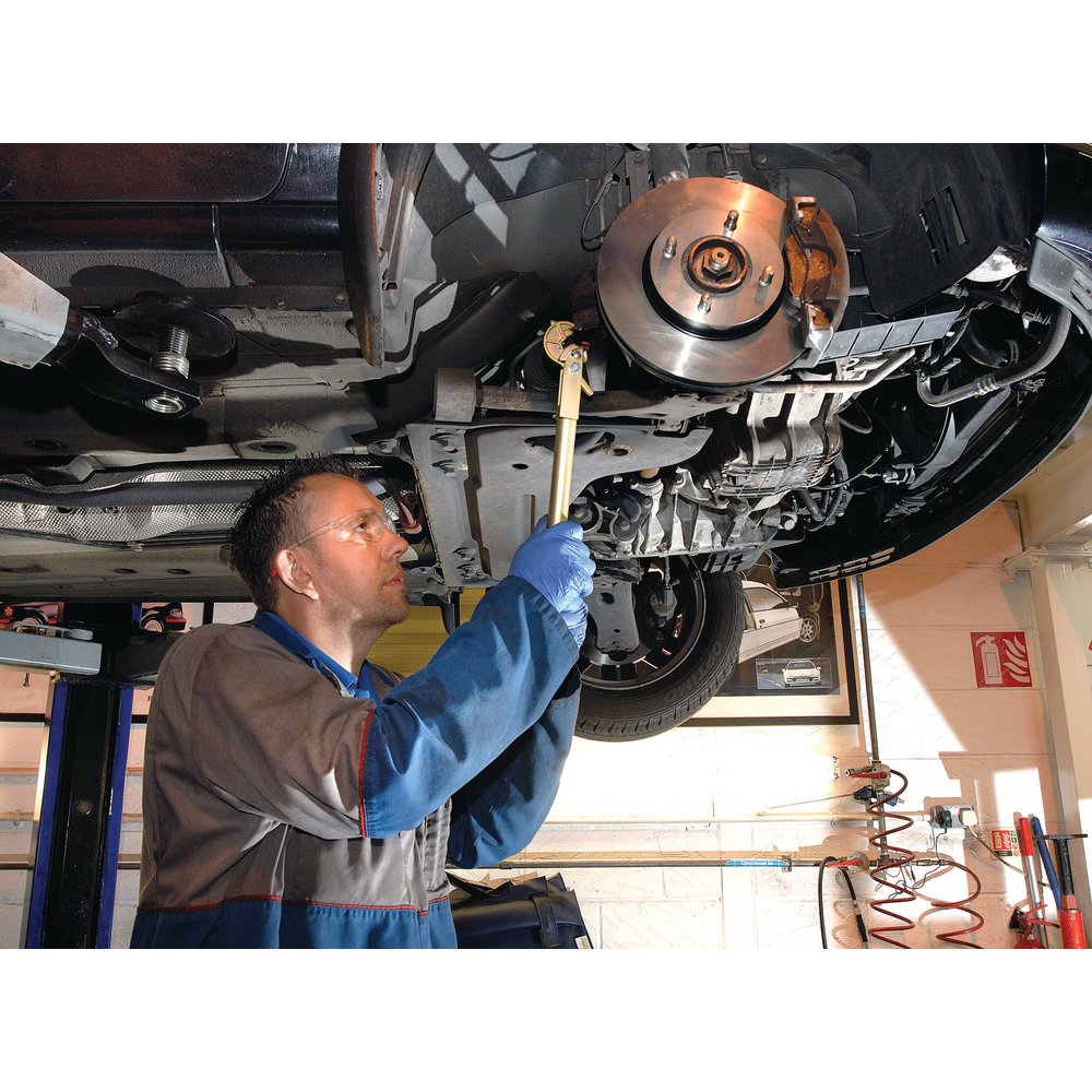 Expert Quality, for loosening and adjusting stubborn track rods. The solid forged steel head and jaws allow more torque for less effort while the large surface area of the serrated jaws help prevent damage to the track rod. For use on 14 - 23mm diameter track rods. Overall length 385mm.