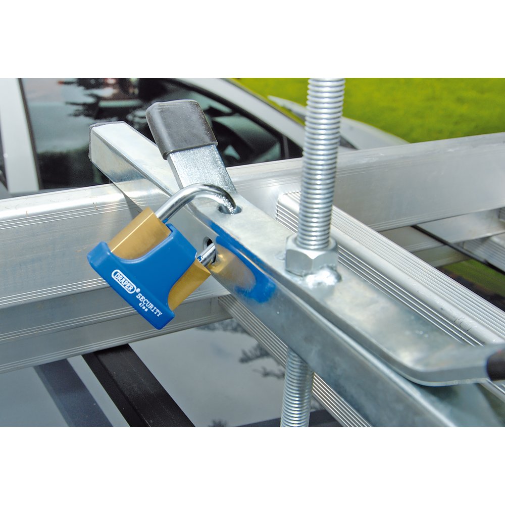 Easy way of securing ladders and steps to car roof racks. Cross beams clamp ladders securely to roof rack by simple spinner handles. Quick and easy tool-free installation. Lock holes for additional security if a padlock is required.