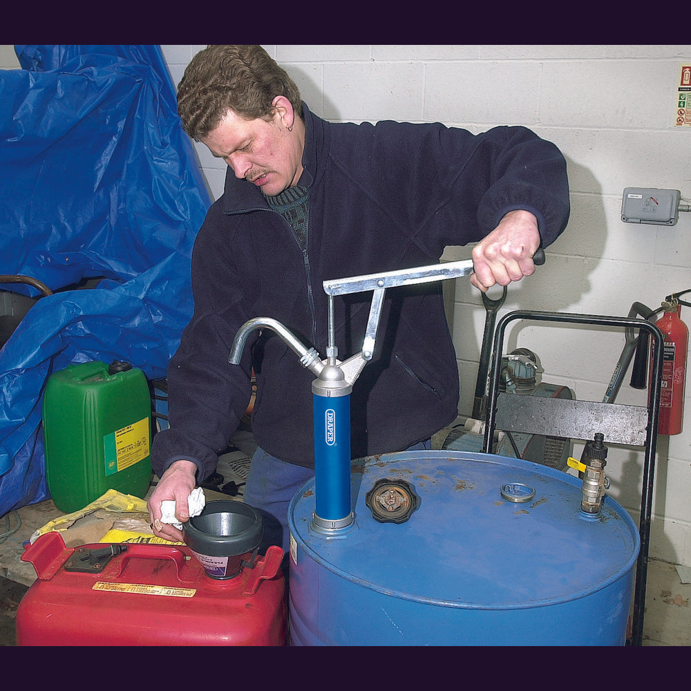 For use with steel barrels capacity 50 to 250L maximum. aluminium diecast head and bung nut with zinc plated curved discharge spout 19.5mm diameter and lever handle. The telescopic suction tube (Supplied) attaches to base of pump to reach bottom of barrel.