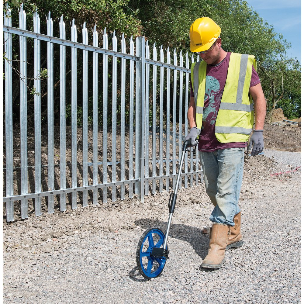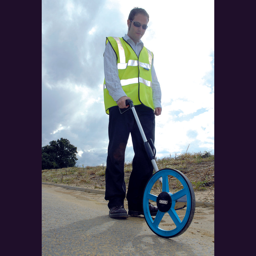 One person operation automatically records measurements whilst the user walks. Suitable for builders, farmers, road contractors etc. Durable lightweight and compact with an adjustable handle 600 - 950mm long, an illuminated readout for poor lighting conditions and a reset facility on milometer, capable of measurements up to 9999.9m. Supplied with a stand and a durable canvas carrying bag.