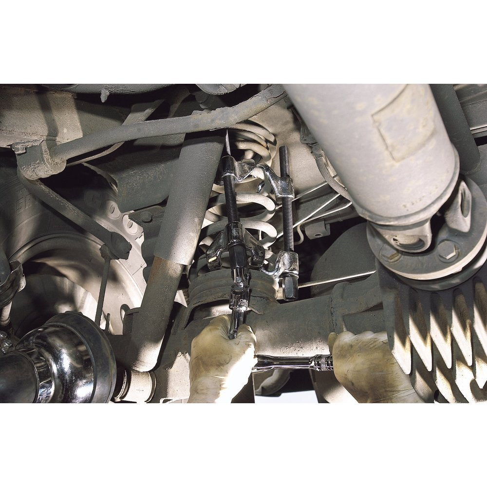 For the removal of seized pistons without damaging outer piston surface. Knurled clamp blocks allow secure grip of inner piston face. Self-locking mechanism ensures tight grip on piston during removal.
