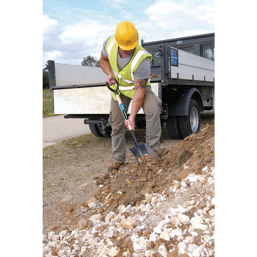 Carbon steel blade with lacquered hardwood shaft and Y - dee shaped handle. Blade width: 240mm and 320mm long.