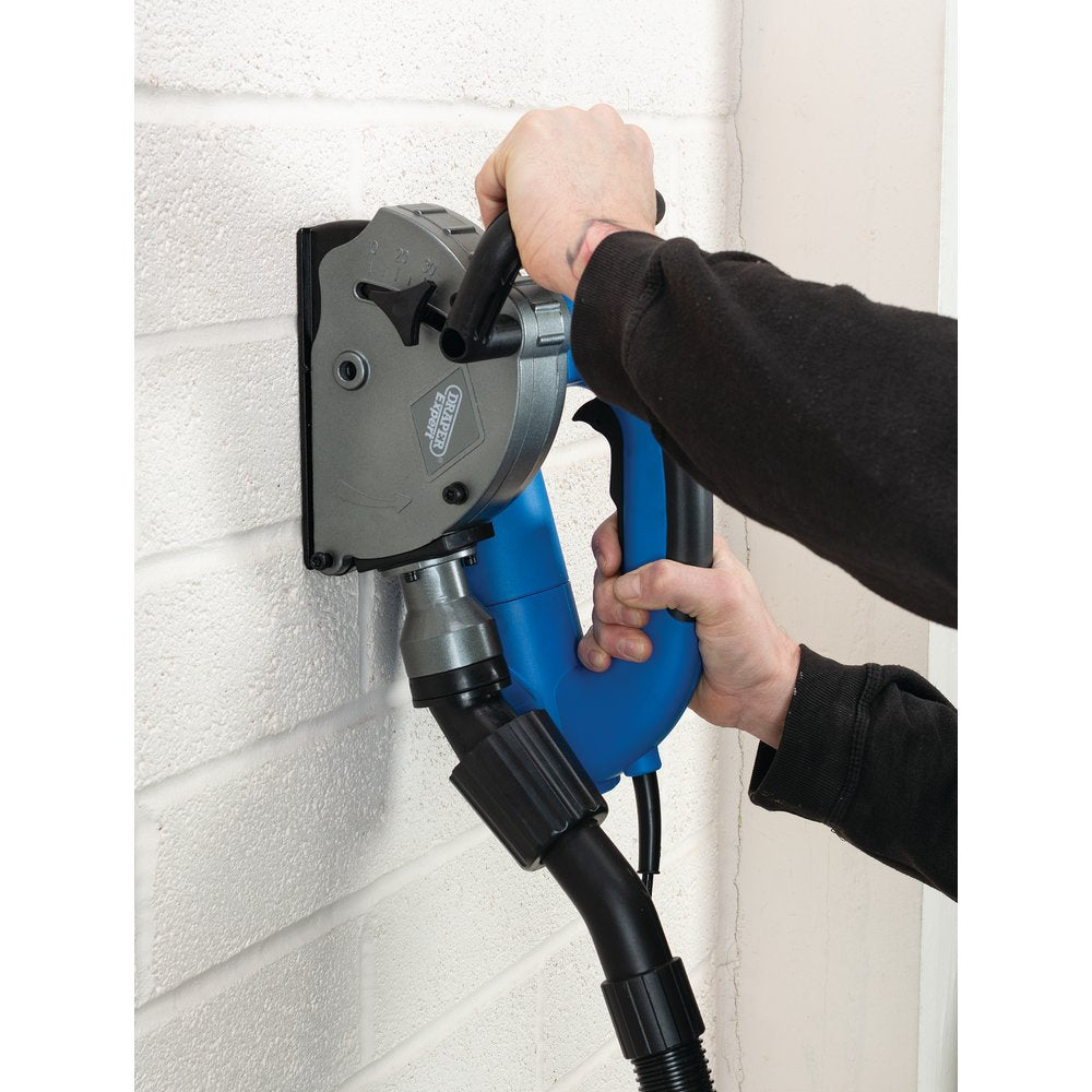 Features: Expert Quality, Adjustable cutting width 8 - 28mm, Adjustable cutting depth 10 - 30mm, Soft start, Dust extraction outlet, Supplied with 2 x diamond blades, side handle, chisel and 3M cable with BS plug