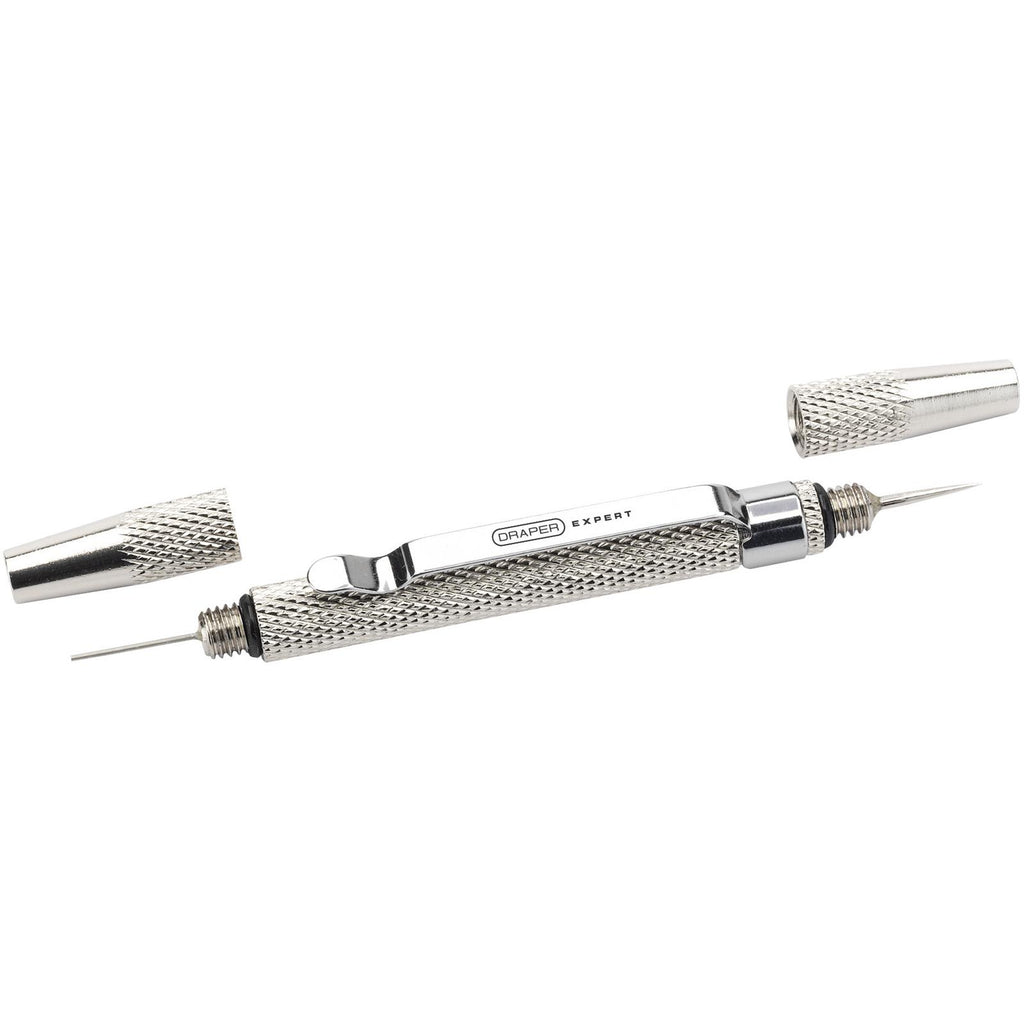• Knurled body with pocket clip, needle point one end and scriber point on the other