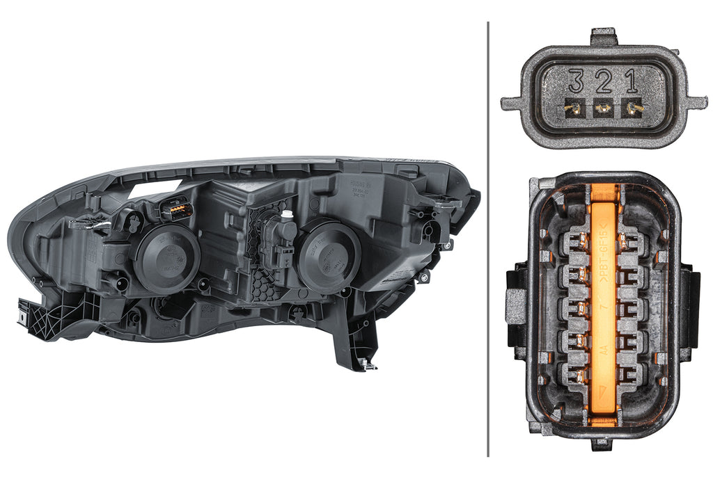 Item Attributes: Mounting Type: Fitting / mountingFastening Type: Horizontal fasteningLamp Type: H7/H3 / T4W / PY21WLight Design: HalogenVoltage: 12 VFitting Position: leftWidth: 225 mmHeight: 150 mmDepth: 127 mmLight Function: with position light / with high beam / with low beam / with indicatorLight functions: 4Prot.type (IP Code): IPX9K / IP6K4KRegistration Type: ECEPlug: DEUTSCH plugLeft-hand/Right-hand Traffic: for right-hand trafficHousing Colour: BlackIlluminated Area: 205 x 120 mmAdditionally required parts: 8JA 201 022-831Diffusing Lens Material: GlassLens Colour: transparentDiffusing Lens Type: Hardened diffusing lensNumber of pins: 6 -pin connectorSupplementary Article/Info 2: with bulbsAssembly by qualified personnel required!The halogen combi headlamp C220 from HELLA is a optic free headlamp. It provides all the following lighting functions - H7 low beam H3 high beam position light and direction indicator light. The design of this halogen combination headlamp also makes it ideal for mounting on vertical surfaces and it ensures optimal illumination of the work area. The lens of this headlamp is made of hardened glass while the lamp housing is made of glass-fibre reinforced plastic which is acid and corrosion resistant. The headlamp is available in 12 V and 24 V.OE references: AEBI R03F401002; KOMATSU 42N-06-35230; MERLO 103133; YANMAR 5350247536Headlight;HELLA;Combi 220;H7/H3;1499mm;for right-hand traffic;Glass;Synthetic Material Housing;mounting;Left;Plastic;X9K;PY21W;with indicator;with bulbs;1268mm;ECE;2254mm;205 x 120mm;Fitting;6-pin connector;Black;E4 11372;12V;with high beam;Halogen;T4W;with low beam;with position light;6K4K;4;1726mm;