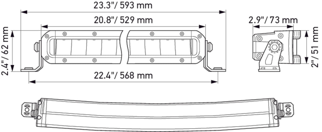 Item Attributes: Mounting Type: Screw Connection / mountingFastening Type: VerticalShape: curved / SlimLight Design: LEDLamp Type: LEDVoltage: 24 V / 12 VFitting Position: FrontLength: 524 mmHeight: 62 mmWidth: 50 mmDepth: 63 mmLight Function: with high beam (LED)Light functions: 1Colour Temperature: 5700 KProt.type (IP Code): IP68 / IP69KRegistration Type: ECEReference number: 50Luminous Flux: 3910 lmCable: 2000 mmLens Colour: Crystal clearFrame Colour: BlackOne-sided/Double-sided: Single layeredHousing Type: Aluminium HousingHousing Colour: BlackAssembly by qualified personnel required!The ECE type-approved HELLA Black Magic Lightbars provide high beam (ECE-R149) with a very powerful light output of up to 9200 effective lumens ideal for off-road situations where you need it most and for trucks that need really good light. Both the slim and double lightbars offer a high recognition effect with their stylish and robust look in an all-black design. Typical installation locations are on the roof or roof bar the radiator grille or bumper. The product complies with the highest dust / waterproof class. The extra-long 2 m cable makes it easy to attach to your vehicle.OE references: DAF 1550328Black Magic Tough;BlackMagic;Arbeitsscheinwerfer;Lightbar;Lichtbar;Lichtbalken;Light-Balken