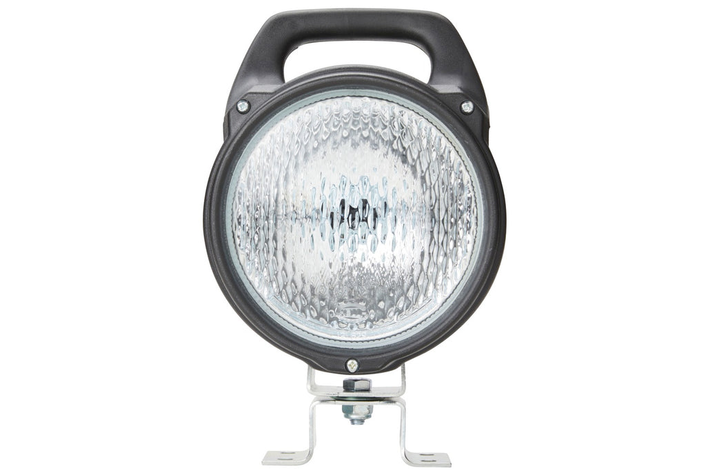 Together with the special honeycomb pattern in the diffusing lens, the parabolic reflector enables homogeneous illumination of the working field at close range. The light source is an H3 bulb (not included in all versions). The worklight can be used (depending on the bulb) with both 12V and 24V on-board voltage. The black housing of this robust worklight is made of glass-fibre reinforced plastic. To protect the diffusing lens, the housing is provided with a protruding rim at its front. The handle, together with the swivel foot, simplifies the adjustment of the work lights so that the working area can be optimally illuminated. The bracket enables a stable four-point attachment of the worklight. The cable entry is sealed by a grommet. Depending on the version, the Matador offers additional advantages such as rotary switches (for versions -001 and -031) or protective grids (for versions -031 and -051). Article 1G4 003 470-141 is only suitable for vertical mounting, as the power connection is made via an easily detachable pipe socket that fits onto push-on tubes (Ø 24 mm) for beacons.Item Attributes: Mounting Type: Screw Connection / mountingFastening Type: Four-point attachmentLight Design: HalogenLamp Type: H3Voltage: 24 V / 12 VHeight: 263 mmWidth: 168 mmDepth: 116 mmLight Distribution: Short distance lightingPlug: open cable endsProt.type (IP Code): IP5K4KPower consumption: 70 W / 35 WSupplementary Article/Info 2: without bulbsHousing Type: Synthetic Material HousingHousing Colour: BlackDiffusing Lens Material: GlassDiffusing Lens Type: Patterned diffusing lensAssembly by qualified personnel required!