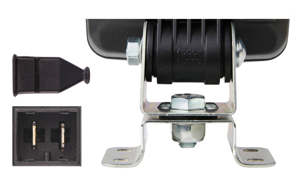 The Ultra Beam is a compact and robust halogen worklight. The aluminium reflector of the worklight is based on free-form technology, which makes it possible to illuminate the working area in a very targeted manner. Despite its compact dimensions, the reflector provides excellent light output. The black lamp housing of this robust worklight is made of glass-fibre reinforced plastic, which is acid-resistant and corrosion-resistant. The housing has a protruding rim to protect the diffusing lens. Due to its compact dimensions, the worklight can be used universally.Item Attributes: Mounting Type: mounting / Screw ConnectionFastening Type: Four-point attachmentLight Design: HalogenLamp Type: H3Voltage: 24 V / 12 VHeight: 152 mmWidth: 112 mmDepth: 97 mmLight Distribution: Short distance lightingPlug: AMPProt.type (IP Code): IP6K9KPower consumption: 55 W / 70 WSupplementary Article/Info 2: without bulbs / without cableHousing Type: Synthetic Material HousingHousing Colour: BlackDiffusing Lens Material: GlassDiffusing Lens Type: Patterned diffusing lensAssembly by qualified personnel required!