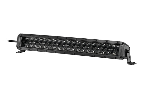 The HELLA Black Magic Offroad Lightbars are off-road headlights with a very powerful light output of up to 20,000 effective lumens, ideal for off-road situations where you really need good light. Both the slim and double lightbars offer a high recognition effect with their stylish and robust look in an all-black design. Typical installation locations are on the roof or roof bar, the radiator grille or bumper. The product complies with the highest dust / waterproof class. The extra-long 2 m cable makes it easy to attach to your vehicle. The Black Magic Lightbars have an integrated thermal sensor that allows them to adjust to the ambient temperature. This new feature not only prevents overheating or LED failure, but also increases light output when the ambient temperature is low. In this way, the user receives the optimum amount of light under all conditions.Item Attributes: Length: 21.5 "Mounting Type: Screw Connection / mountingFastening Type: VerticalLight Design: LEDLamp Type: LEDVoltage: 12 V / 24 VLength: 563 mmWidth: 75 mmHeight: 91 mmDepth: 85 mmLight Distribution: Off-road LightingFulfils ECE norm.: R10Plug: open cable endsProt.type (IP Code): IP68 / IP69KCable: 2000 mmLuminous Flux: 11000 lmColour Temperature: 5700 KHousing Type: Aluminium HousingHousing Colour: BlackShape: double row / curvedDiffusing Lens Material: PC (Polycarbonate)Quantity: 1Assembly by qualified personnel required!