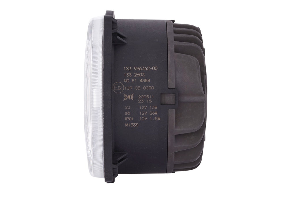 Item Attributes: Mounting Type: FittingFastening Type: Frame holderLamp Type: LEDLight Design: LEDVoltage: 12 VFitting Position: right / leftWidth: 139 mmHeight: 176 mmDepth: 98 mmLight Function: with high beam (LED) / with outline marker light (LED) / with low beam (LED)Light functions: 3Prot.type (IP Code): IP6K9K / IP6K7Registration Type: ECE / SAEfulfils SAE norm: J222Plug: DEUTSCH plugLeft-hand/Right-hand Traffic: for right-hand traffic / for left-hand trafficConnector type: DEUTSCH Diffusing Lens Material: GlassLens Colour: transparentDiffusing Lens Type: Clear diffusing lensSupplementary Article/Info 2: Electromagnetic Compatibility (EMC)Assembly by qualified personnel required!The M133 LED main headlamp from HELLA makes it easy to switch from halogen to LED technology especially as the low beam and high beam are combined in one housing. In addition the headlamp is optionally available with or without position light and as a recessed or surface-mounted version. The robust aluminium housing protects the headlamps optimally and reliably against impacts and vibrations and thus withstands harsh conditions such as in the agricultural and construction machinery industry.Headlight;HELLA;M133;Fitting;Right;DEUTSCH plug;ECE;with high beam (LED);6K9K;R7.02;6K7;Left;SAE J222;Electromagnetic Compatibility (EMC);with low beam (LED);with outline marker light (LED);LED;E12 10R-05 0091;12V;for left-hand traffic;6000K;for right-hand traffic;140mm;