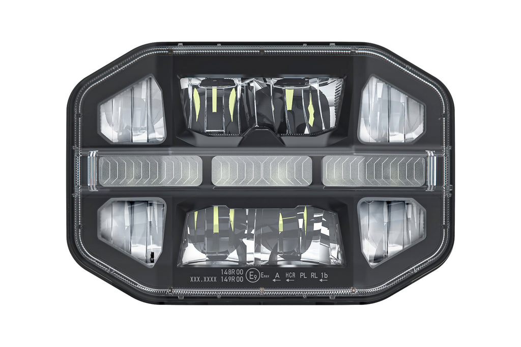 The C240 LED is a combination headlight in which all lighting functions are implemented using LED technology. The special free-form reflector in conjunction with the LED light source provides significantly better light than headlights with halogen bulbs. Due to the light color being similar to daylight, the light appears significantly brighter to the eye and therefore enables fatigue-free work at night. The main headlight is particularly vibration and shock resistant. Ideal for harsh use on construction vehicles (high vibrations, dust, moisture, mechanical shock, etc.). Thanks to LED technology, a service life can be achieved. The lower LED power consumption compared to a conventional halogen headlight also leads to fuel savings, which can save further costs. The C240 LED meets all ECE and SAE requirements and is suitable and approved for almost worldwide use.Item Attributes: Fitting Position: leftMounting Type: BoltedFastening Type: Horizontal fasteningLight Function: with indicator (LED) / with high beam (LED) / with low beam (LED) / with position light (LED) / with daytime running light (LED)Supplementary Article/Info 2: with indicator failure controlLeft-hand/Right-hand Traffic: for right-hand traffic / for left-hand trafficLamp Type: LEDLight Design: SymmetricVoltage: 24 V / 12 VRegistration Type: ECEFulfils ECE norm.: R148 / R10 / R149Housing material: PBTProt.type (IP Code): IP6K9KTemperature range from: -40 °CTemperature range to: +50 °CPlug: DEUTSCH plugNumber of pins: 6 -pin connectorHeight: 165 mmWidth: 245 mmDepth: 192 mmReverse polarity protection: YesObserve mounting informationpaired article number: 1SF 328 550-021Assembly by qualified personnel required!