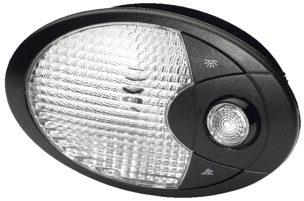 Item Attributes: Mounting Type: Spring mounted / Bolted / FittingLight Design: LEDLamp Type: LEDVoltage: 24 V / 12 VFitting Position: InteriorLength: 110 mmHeight: 70 mmDepth: 33 mmLight Function: with cabin lightLight functions: 1Number of LEDs: 1Housing Colour: BlackLens Colour: Crystal clearCable: 200 mmRated Current: 0.21 Aadjustable: adjustablePower consumption: 2.5 WSupplementary Article/Info 2: with screw connectionQuantity: 1SVHC: 7439-92-1; LeadAssembly by qualified personnel required!Pleasant and reliable lighting even in the vehicle interior: This is ensured by the powerful interior lights from HELLA. Different designs colours and mounting types offer a wide choice and flexibility. The use of efficient LEDs ensures uniform and optimal illumination. Depending on the variant a pleasant ambient or reading light can also be produced. For different requirements there are variants with and without frames and switches. In addition HELLA's indoor luminaires are very robust and have a very low installation height making them suitable for flat installation environments.OE references: CASE IH 4 740 503 6; CLAAS 4-48000001280Interior Light;HELLA;SpotLED;1;Crystal clear;Blue;35W;12V;Bolted;Black;LED;24V;White;1;Fitting;200mm;LED;7439-92-1; Lead;Spring mounted;with cabin light;