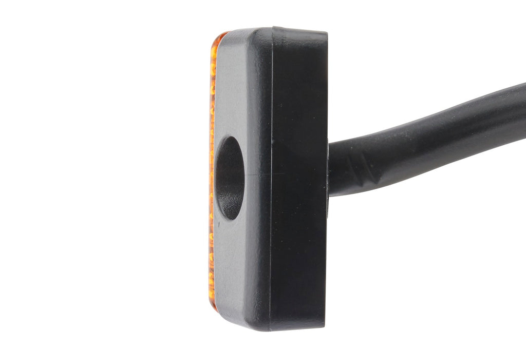 Item Attributes: Mounting Type: mounting / Screw ConnectionFastening Type: for vertical fasteningLight Design: LEDLamp Type: LEDVoltage: 12 VFitting Position: right / leftHeight: 16 mmWidth: 32 mmLength: 130 mmLight Function: with reflector / with side marker light (LED)Light functions: 2Plug: open cable endsProt.type (IP Code): IP6K9KFulfils ECE norm.: R91 / R3Registration Type: CCC / ADR/GGVS / SAENumber of LEDs: 1LED colour: YellowCable: 1500 mmHousing Type: Housing with Plastic LidHousing Colour: BlackLens Colour: YellowPower consumption: 0.4 WSupplementary Article/Info 2: with pipeNumber of pins: 2 -pin connectorQuantity: 1SVHC: 7439-92-1; LeadAssembly by qualified personnel required!