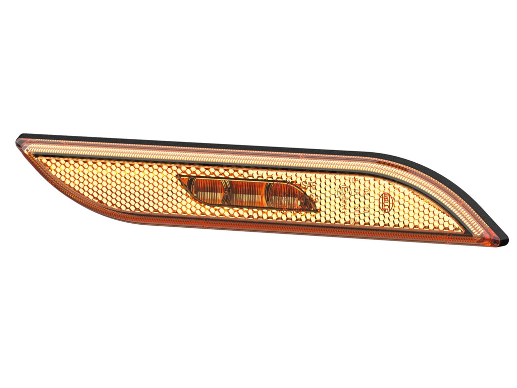 Item Attributes: Mounting Type: mounting / BoltedFastening Type: for horizontal fasteningLight Design: LEDLamp Type: LEDVoltage: 24 V / 12 VFitting Position: leftHeight: 16 mmWidth: 34 mmLength: 205 mmLight Function: with reflector / with side marker light (LED)Light functions: 2Plug: Blade Terminal SleeveProt.type (IP Code): IP6K7 / IPX9KFulfils ECE norm.: R91Registration Type: ADR/GGVSNumber of LEDs: 1LED colour: YellowCable: 250 mmHousing Type: Housing with Plastic LidHousing Colour: BlackLens Colour: YellowPower consumption: 0.5 WBolt/Nut Version: StudNumber of pins: 2 -pin connectorQuantity: 1SVHC: 7439-92-1; LeadAssembly by qualified personnel required!HELLA Shapeline. The variety of shapes and different combination options coupled with a technically optimised product design make the Shapeline luminaire range an innovation in the field of vehicle lighting! Whether at the front side or rear of the vehicle any vehicle series - whether small or large - can be given an individual and above all consistent appearance via an individual composition and arrangement of the lights. In addition to innovative technology and the well-known high HELLA quality the variety of shapes of the Shapeline luminaires offers you almost limitless design freedom.Side Marker Light;HELLA;Shapeline Style;24V;for horizontal fastening;2;Stud;1;205mm;250mm;with reflector;34mm;Bolted;ECE;7439-92-1; Lead;LED;with side marker light (LED);Blade Terminal Sleeve;2conductor;Left;155mm;Yellow;12V;LED;E24 5984;