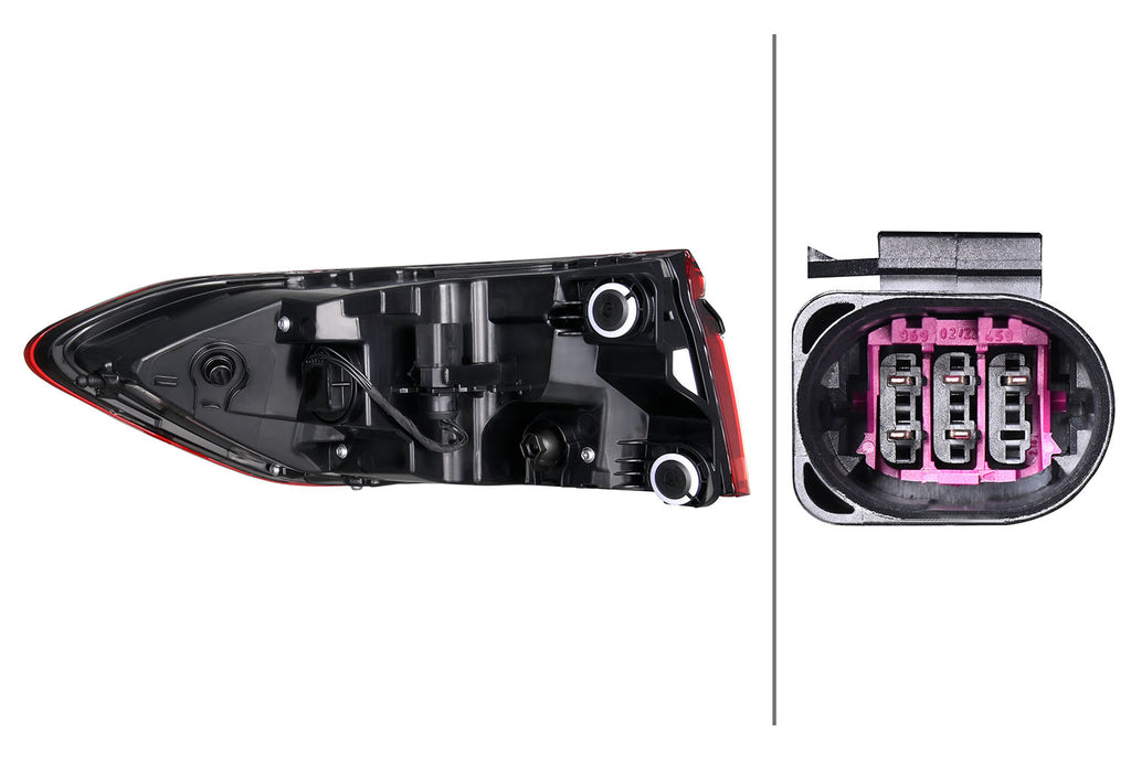 HELLA stands for competence and experience in automotive lighting, and has done so for over 100 years. HELLA offers both the trade and workshops a high-quality and comprehensive range of lighting. The independent aftermarket benefits in particular from HELLA's many years of original equipment expertise - because HELLA is one of the leading suppliers in this field with an extensive range of innovative lighting products, on whose quality products numerous car manufacturers worldwide place their trust. An OE know-how that we successfully transfer to the independent parts market. In road traffic, communication often takes place via light signals. Vehicle-specific combination rearlights from HELLA offer extra safety in road traffic. With original equipment quality and a high market coverage, we offer suitable spare parts for many vehicle types.Item Attributes: Fitting Position: rightLight Design: LEDLamp Type: LEDLight functions: 3Light Function: with taillight (LED) / with indicator (LED) / with stop light (LED)Registration Type: CCC / ECEfor PR number: 8SP / AV4 / 2ZD / AV1 / AV0 / 4ZPSection: Outer sectionpaired article number: 2SD 013 095-651Left-hand/Right-hand Traffic: for left-hand traffic / for right-hand trafficOptical Impression: BlackAssembly by qualified personnel required!