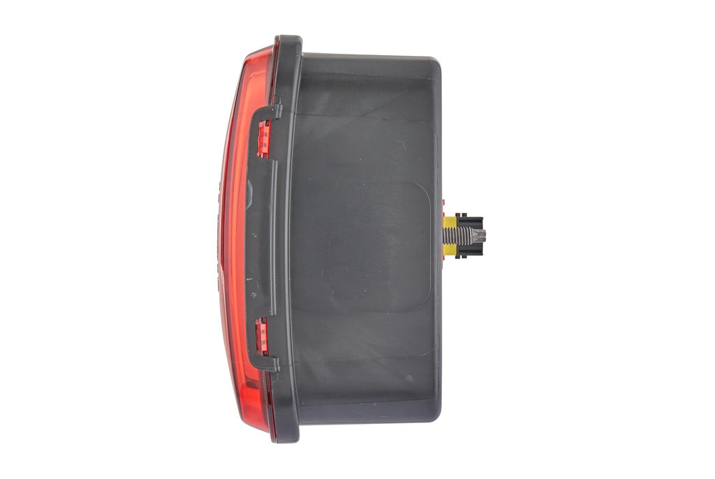Item Attributes: Mounting Type: mounting / BoltedFastening Type: for horizontal fasteningLight Design: LEDLamp Type: LEDVoltage: 24 VFitting Position: rightHeight: 92 mmWidth: 159 mmLength: 404 mmLight Function: with stop light (LED) / With Wiping Effect / without number plate light / with reflector / with side marker light (LED) / with rear fog light (LED) / with marker lamp (LED) / with indicator (LED) / with taillight (LED) / with reverse light (LED)Light functions: 9Plug: DIN BajonettPlug: Round PlugProt.type (IP Code): IP5K4K / IPX9KRegistration Type: ECE / ADR/GGVSNumber of LEDs: 53Cable: 500 mmHousing Type: Integrated housingHousing Colour: BlackLens Colour: Red / Crystal clearLED colour: White / Yellow / RedSupplementary Article/Info 2: with bolts/screws / Electromagnetic Compatibility (EMC) / Side Connectorpaired article number: 2VD 012 381-311Quantity: 1Assembly by qualified personnel required!