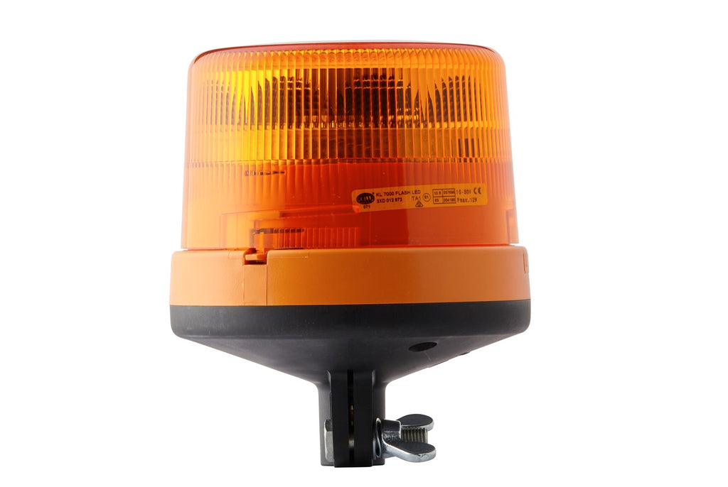 Item Attributes: Mounting Type: Flexible pipe socketsLight Design: LEDLamp Type: LEDVoltage: 24 V / 12 VHeight: 194 mmOuter Diameter 1: 155 mmLight Function: With flashing warning signalLight colour: BlueProt.type (IP Code): IP5K4K / IPX9KFulfils ECE norm.: R10 / R65Registration Type: SAE / ADR/GGVSLens Colour: BlueHousing Colour: BlackPower consumption: 30 WHousing material: ABS (Acrylonitrile-Butadiene-Styrene Copolymerisate)Operating temperature from: -40 °COperating temperature to: +60 °CCable: 200 mmDiffusing Lens Material: PMMA (Polymethylmethacrylate)Weight: 1120 gQuantity: 1Assembly by qualified personnel required!The KL 7000 LED beacon is available with flashing or rotating light function. The signal is generated by means of an electronic concept and thus without moving parts. The beacon can be connected to an operating voltage of 10 - 32 V and is available as a fixed-mount variant (F) with tube socket mounting (R) or with magnetic mounting (M). The fixed version can be mounted from above and below. The product is very flat and has a scratch-resistant and dirt-resistant smooth light bonnet. The height of the beacon is approx. 119 mm (F) to 194 mm (R) depending on the design. It meets the requirements of IP5K4K and IPX9K and is therefore protected against dust and resistant to high-pressure cleaners. In addition the KL 7000 LED enables a 1:1 exchange from halogen to LED technology as it is the successor of the halogen beacon series KL 700 and KL 7000.Strobe-type Beacon;HELLA;KL 7000;12W;120km/h;1;PMMA (Polymethylmethacrylate);155mm;Black;035A;With flashing warning signal;24V;LED;Yes;200mm;IP 5K4K;LED;Blue (2x);12V;140g;1;ECE-R10;ADR/ GGVS Checked;White;ABS (Acrylonitrile-Butadiene-Styrene Copolymerisate);ECE;07A;IP X9K;-40°C;+60°C;194mm;Flexible pipe sockets;ECE-R65;Electromagnetic Compatibility (EMC);