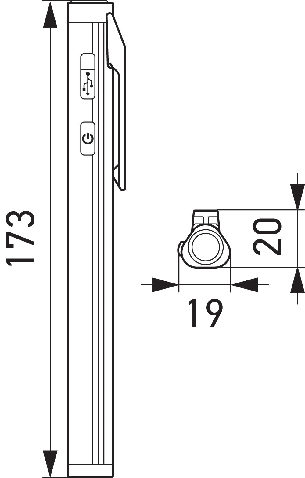 Item Attributes: Light Design: LEDLamp Type: LEDBattery: Li-Ion Rechargeable BatteryVoltage: 3.7 VLuminous Flux of: 75 lmLuminous Flux up to: 250 lmOperating time to: 600 minBattery Capacity: 2000 mAhSupplementary Article/Info 2: with hook / with magnetChargingTime: 4.0 Hrs.Operating temperature from: -10 °COperating temperature to: +40 °CHousing Type: Synthetic Material HousingColour Temperature: 7000 KHeight: 119 mmWidth: 58 mmDepth: 30 mmHeadlight Range: 50 mSwivel Range: 360 °Prot.type (IP Code): IP54Charging Cable Length: 0.75 mPlug: Micro-USBLight functions: 2Charging Voltage: 5 VWeight: 140 gAssembly by qualified personnel required!HELLA USB Pocket Light 500 UP500. Compact work lamp with double light source (SMD + COB). For a light angle of up to max. 120° and a maximum range of up to 50 m. The options for mounting are a magnetic base or a hook (360° swivelling). This means that it can be used at any angle. With practical charging status display. The work lamp is waterresistant and therefore suitable for indoor and outdoor use.