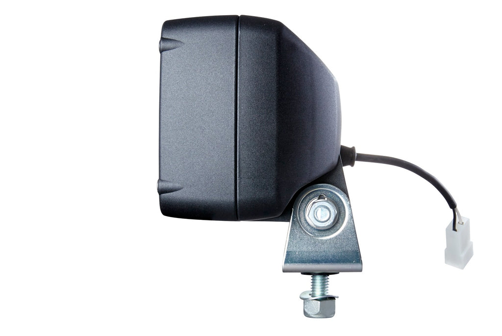 With the Module 70 LED Generation 3.2 HELLA brings a light upgrade of the established Module 70 LED Generation 3. Equipped with 3 high-power multichip LEDs the module produces 70 LED Generation 3.2 now 1800 measured lumens with an energy consumption of only 20 watts. (Comparison: Generation 3 only produced 800 lumens). The worklight's black housing is made of aluminium and has cooling fins to ensure the necessary heat dissipation of the high-performance LEDs. In addition to the standard cable version the compact Module 70 LED Generation 3.2 also comes with an integrated DEUTSCH plug for the first time. The electronics of the worklight are multi-voltage compatible and can therefore be operated with 12 or 24 volts. The integrated electronics protect the unit in the event of reverse polarity and ensure constant brightness even with a fluctuating operating voltage of 9 to 32 volts. In addition temperature sensors protect the worklight from overheating. This is the only way to ensure the long service life of the LEDs and safe working at night. The light beams of the LEDs are emitted homogeneously into the working area thanks to the multifacet reflector and the light disk. Despite its compact design this is a very robust worklight for numerous applications. The light of the LED worklight is very similar to daylight. This has the effect of distinguishing colours more clearly in the dark making it much easier for the human eye to perceive the senses and preventing fatigue. The Module 70 LED Generation 3.2 is also available as a reversing spotlight.