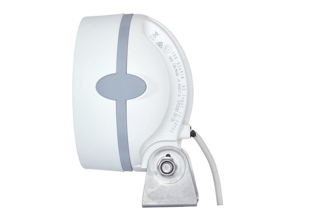 Item Attributes: Voltage: 12 V / 24 VMounting Type: mountingSupplementary Article/Info 2: Electromagnetic Compatibility (EMC)Light Design: LEDProt.type (IP Code): IP6K8 / IP6K9KNumber of LEDs: 3Searchlight type: Handheld searchlightHousing Colour: BlackHousing material: Cast AluminiumHousing Type: Aluminium HousingCable: 3.5 mLamp Type: LEDLuminous Flux: 2500 lmLight Distribution: Long-range illuminationReflector Material: PlasticDiffusing Lens Type: Hardened diffusing lensSVHC: 7439-92-1; LeadAssembly by qualified personnel required!The Module 70 LED hand-held searchlight adds another variant to the already established Module 70 series. The handheld searchlight can be used flexibly thanks to the practical handle. In addition to a switch for continuous operation the handle also has a push-button switch for short-time operation which additionally enables a Morse function. Thanks to the specially developed reflector the light from the worklight is directed extremely far into the distance. With a colour temperature of 6500 Kelvin the light of the LED worklight is very similar to daylight. This causes colours to distinguish themselves more clearly in the dark making it much easier for the human eye to perceive them. Due to its low energy consumption the Module 70 LED hand-held searchlight is ideal for use on vehicles with battery operation. The electronics are multi-voltage compatible and can be operated with 12 or 24 volts. The integrated electronics protect the unit in the event of polarity reversal and ensure constant brightness even with a fluctuating operating voltage of 9 - 32 volts. The hand-held searchlight is resistant to shocks vibrations and voltage fluctuations. The worklight's black housing is made of aluminium and has cooling fins to ensure the necessary heat dissipation of the four high-performance LEDs thereby extending their service life. Thanks to the CoroSafe coating the LED worklight is additionally protected against corrosion to withstand even the toughest conditions. This makes the LED hand-held searchlight ideal for use in areas with high levels of salt and water.OE references: TATRA TW30080Searchlight;HELLA MARINE;Modul 70 Gen. IV;2500lm;Long-range illumination;Handheld searchlight;mounting;3;LED;12V;IP 6K8;Plastic;Electromagnetic Compatibility (EMC);7439-92-1; Lead;LED;24V;Aluminium Housing;IP 6K9K;Cast Aluminium;35m;Hardened diffusing lens;Black;