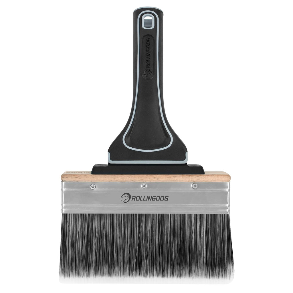 This large, wide brush from ROLLINGDOG provides maximum coverage for painting walls and decking. It features fine-tipped solid filaments, making it suitable for all types of paint. The stainless steel ferrule enhances the brush's durability. Its angled design allows for easy access to tight spaces. Additionally, the heavy-duty handle has a rubber grip for comfort and a secure hold. The brush can also be connected to a SECURE-CLICK™ tapered fit extension pole, making it ideal for reaching difficult areas.